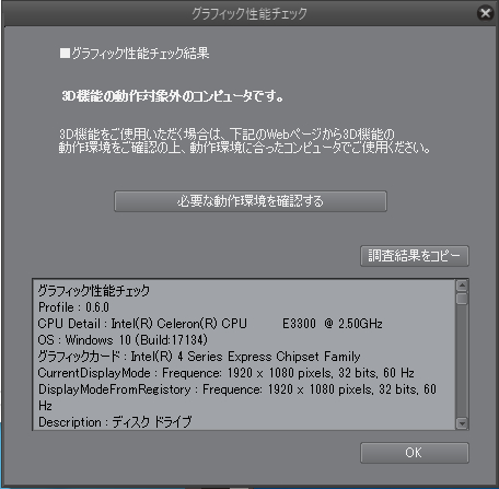 ・CLIP STUDIO PAINTの[ヘルプ]メニューから[グラフィック性のチェック]をおこなっていただき、