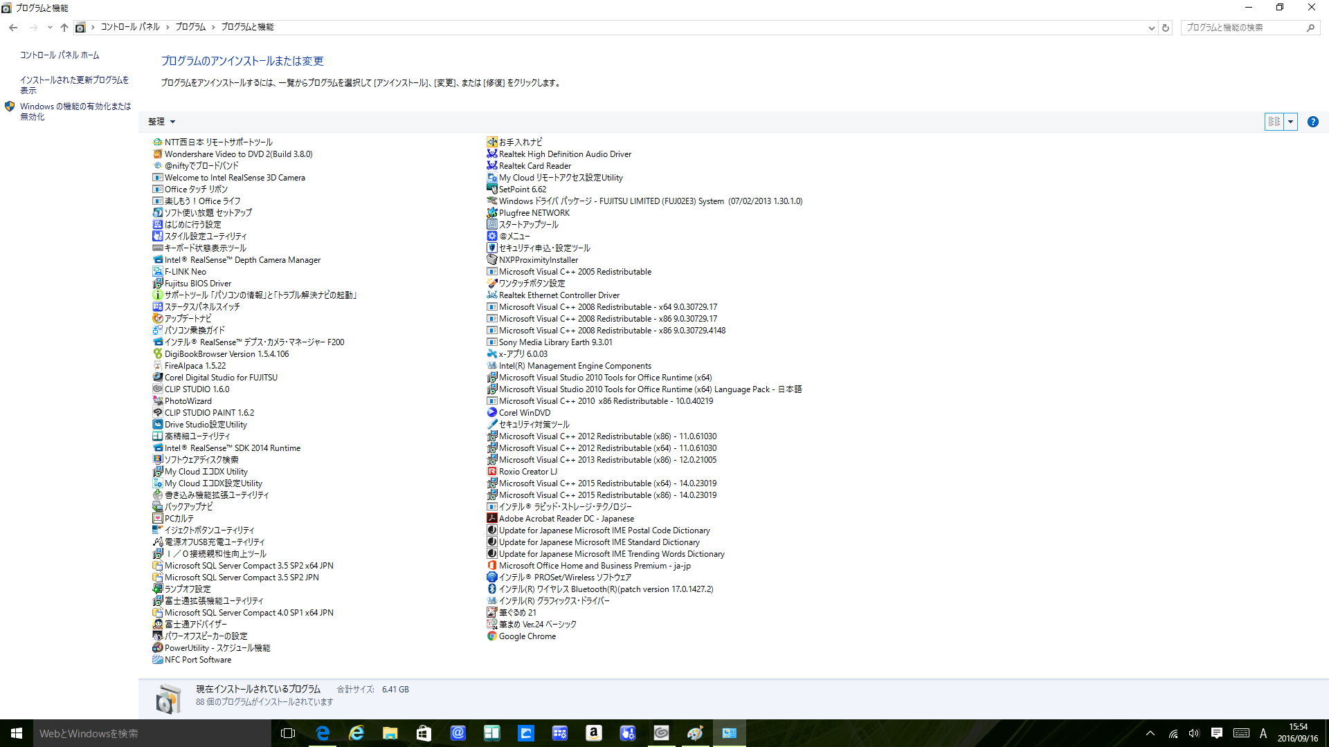 [コントロールパネル]→[プログラムと機能(プログラムのアンインストール)]にて