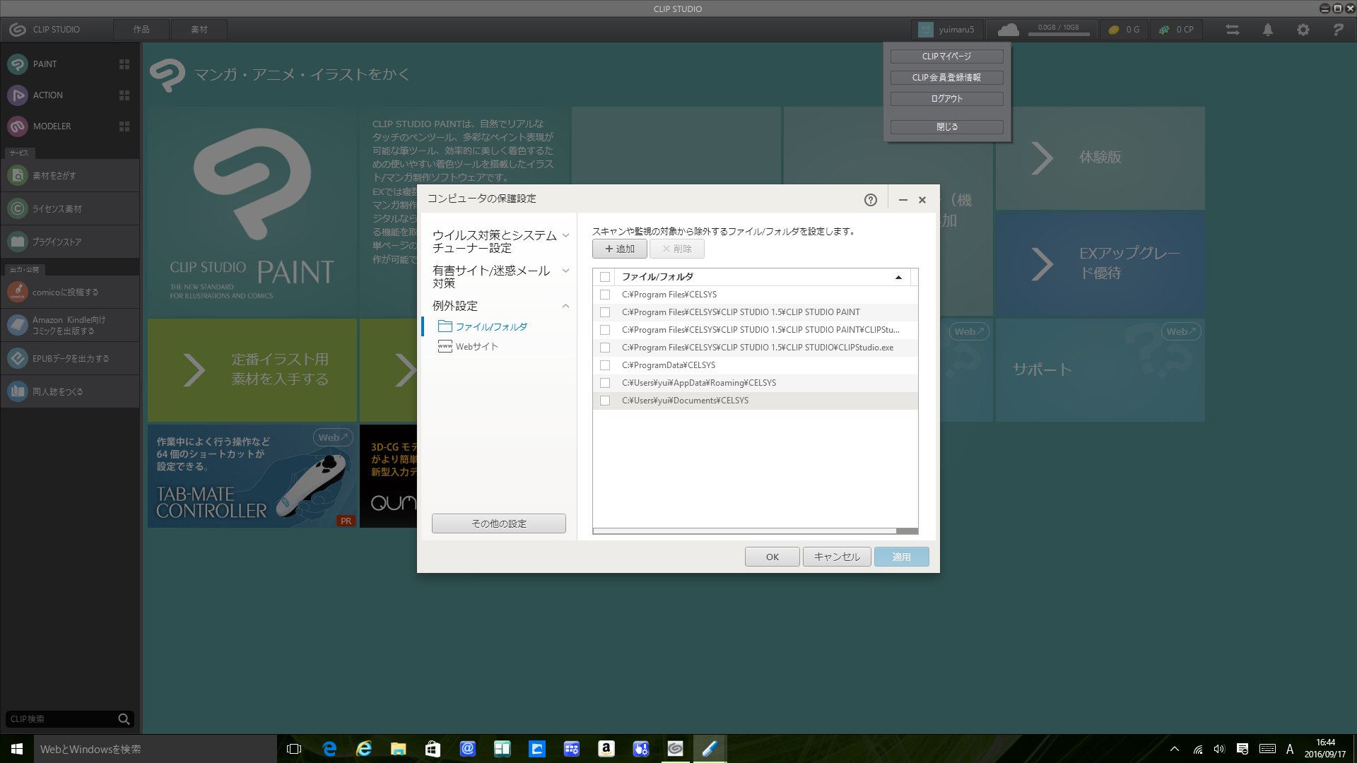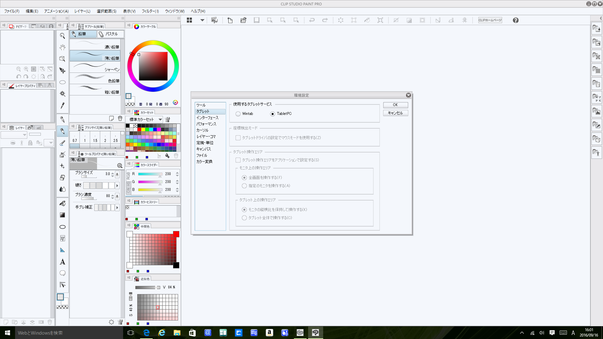・CLIP STUDIO PAINTを起動し、[ファイル]メニュー→[環境設定]を選択し、