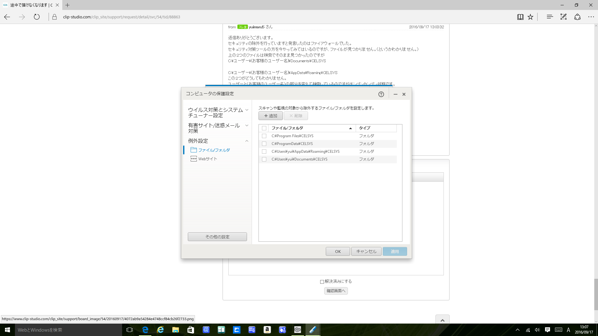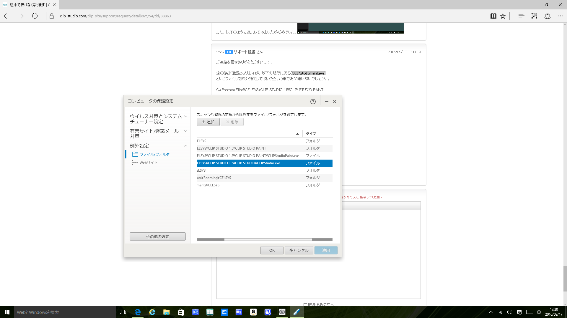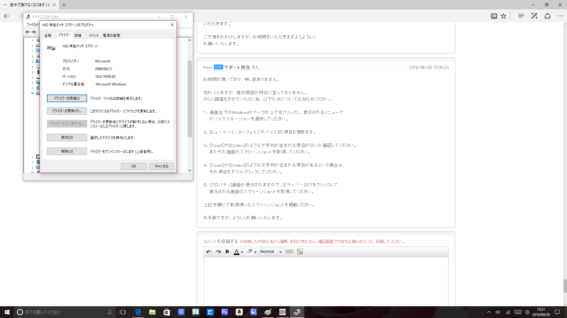 →メーカーとインターネットサポートセンターと両方に電話をしてリモートサービスが受けられたので両方とも電話をしながら遠隔操作で見てもらいました。