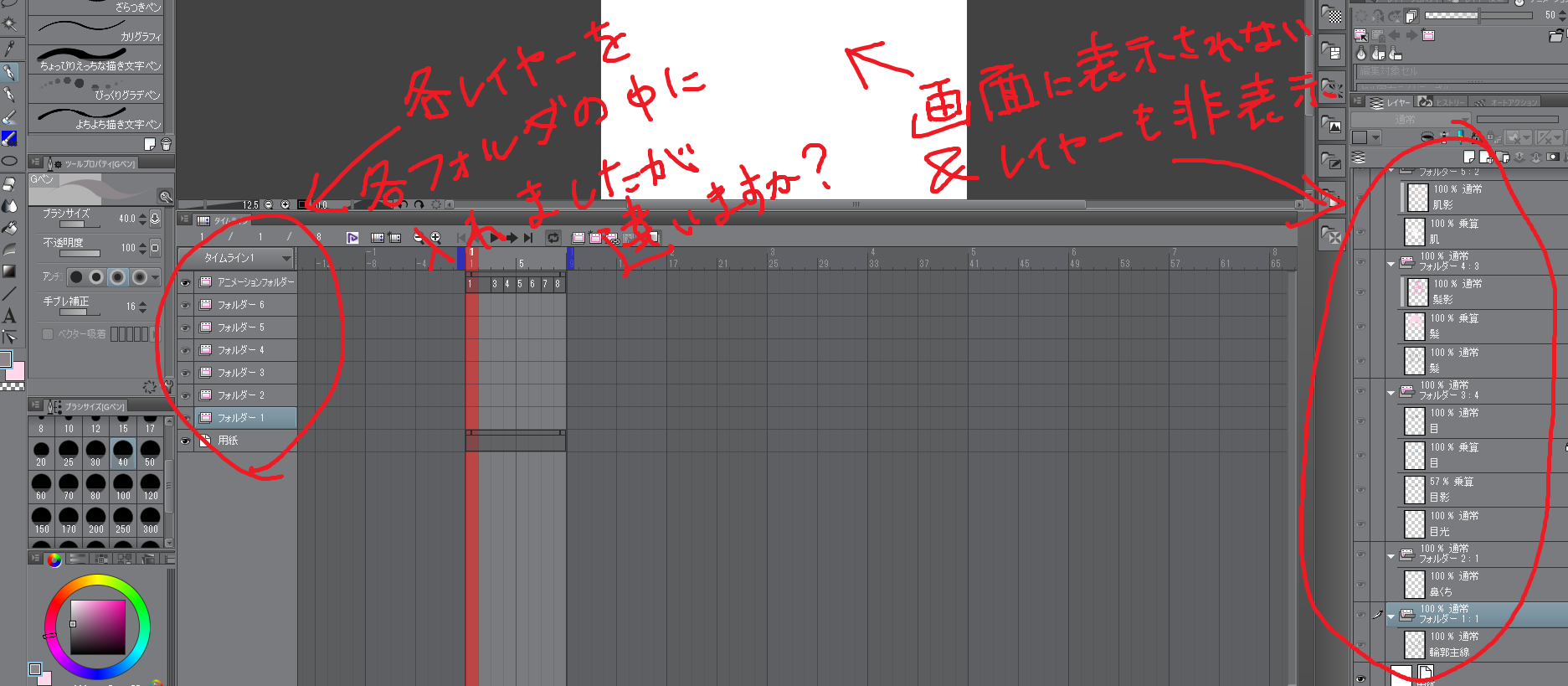 普段ラスターレイヤーを使うように、1秒間8枚の絵の1枚ごとにレイヤーフォルダの中に何枚かレイヤーを作りたいのですが、下描き、色分け、色塗りを普段と同じように使うにはどうしたら良いですか? 下のラスターレイヤーのパーセンテージを薄くして参照して上のレイヤーで描くことが出来ません。 ![]() ------------------------------------------------------------ ■バージョン: ※Windowsは、[ヘルプ]メニュー → [バージョン情報]で確認できます。 ※MacOSXは、[CLIP STUDIO PAINT]メニュー → [バージョン情報]で確認できます。 ■グレード DEBUT( ) comico( ) PRO( ) EX( ○ ) ■OS Windows XP( ) Windows Vista( ) Windows 7 ( ) Windows 8( ) Windows 8.1( ) Windows 10( ○ ) MacOS X 10.5( ) MacOS X 10.6( ) MacOS X 10.7( ) MacOS X 10.8( ) MacOS X 10.9( ) MacOS X 10.10( ) MacOS X 10.11( ) mac OS 10.12( ) その他( ) ------------------------------------------------------------ |