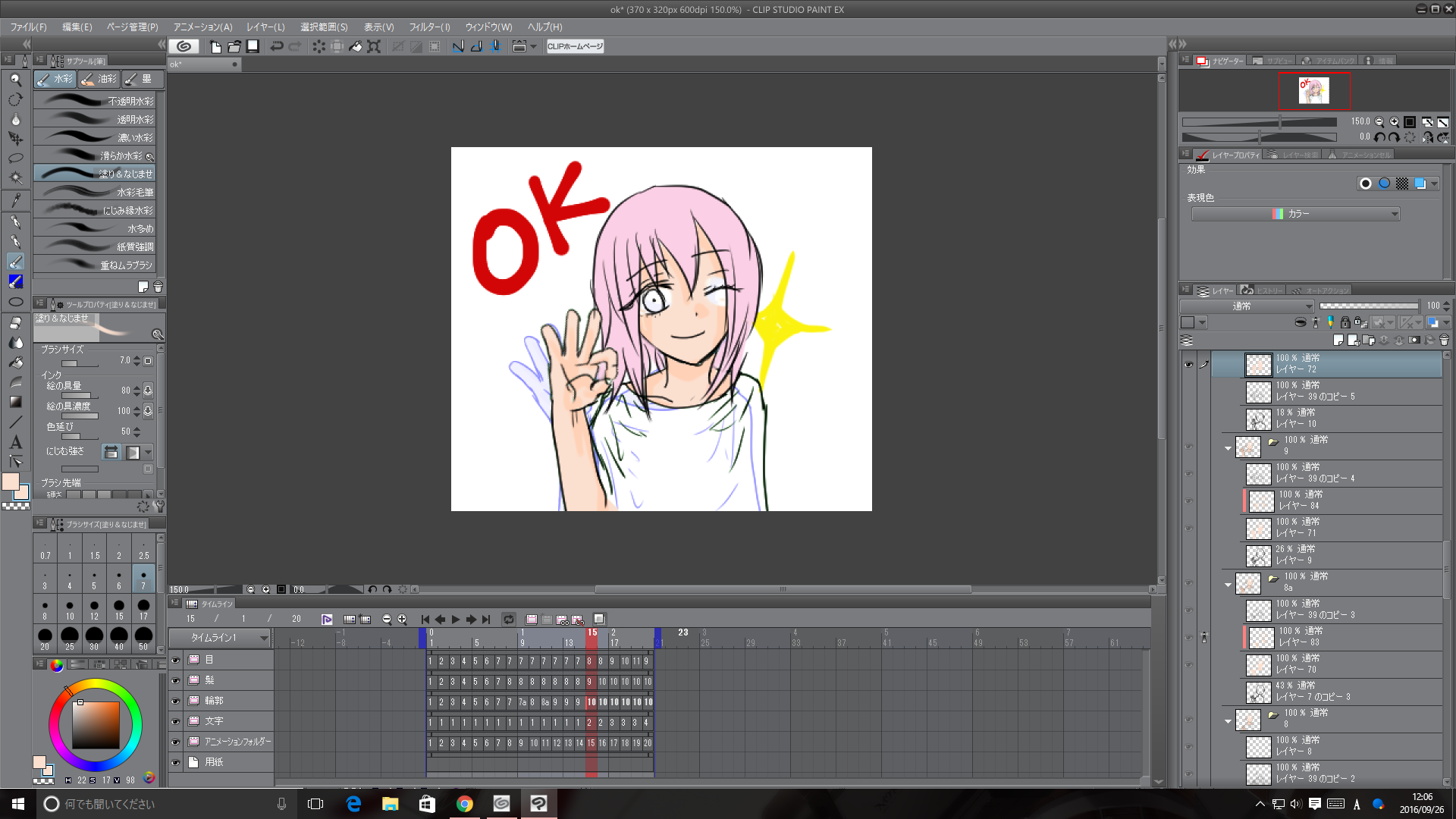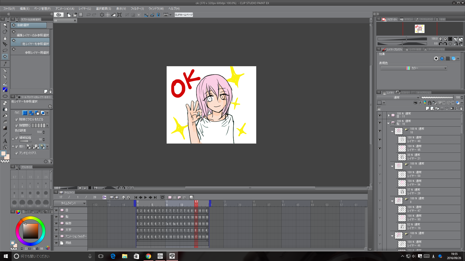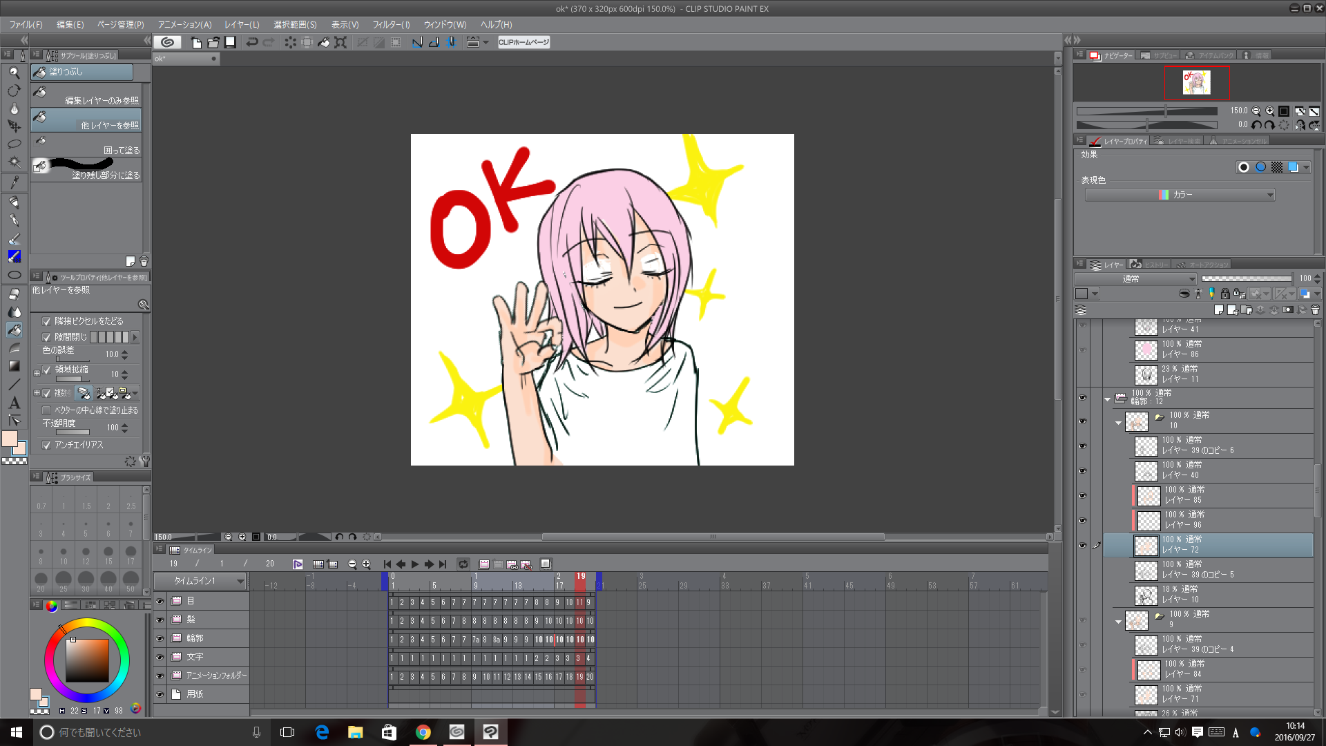 タイムラインで動画としてアニメーション再生する際に、やはり同じセル数枚、塗り残し、はみ出しがあり、