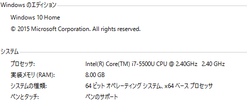 ・こちらのページをご覧いただき、「システムの種類」「CPU」