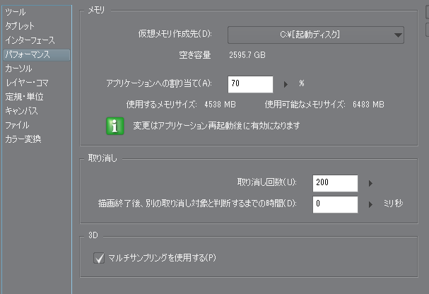 ・CLIP STUDIO PAINTを再起動後、[ファイル]メニュー→