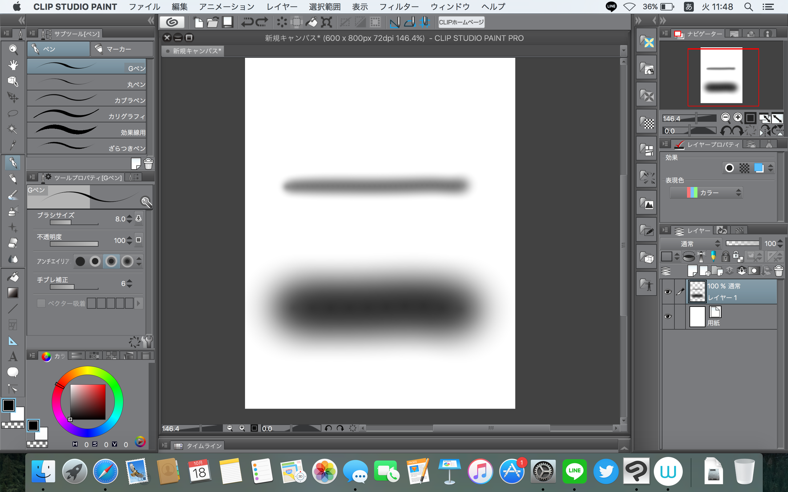 ・バージョンは1.6.2 ・マウスはないのでトラックパッドでブラシを比較すると画像のようになります(上がペン、下がトラックパッド)。