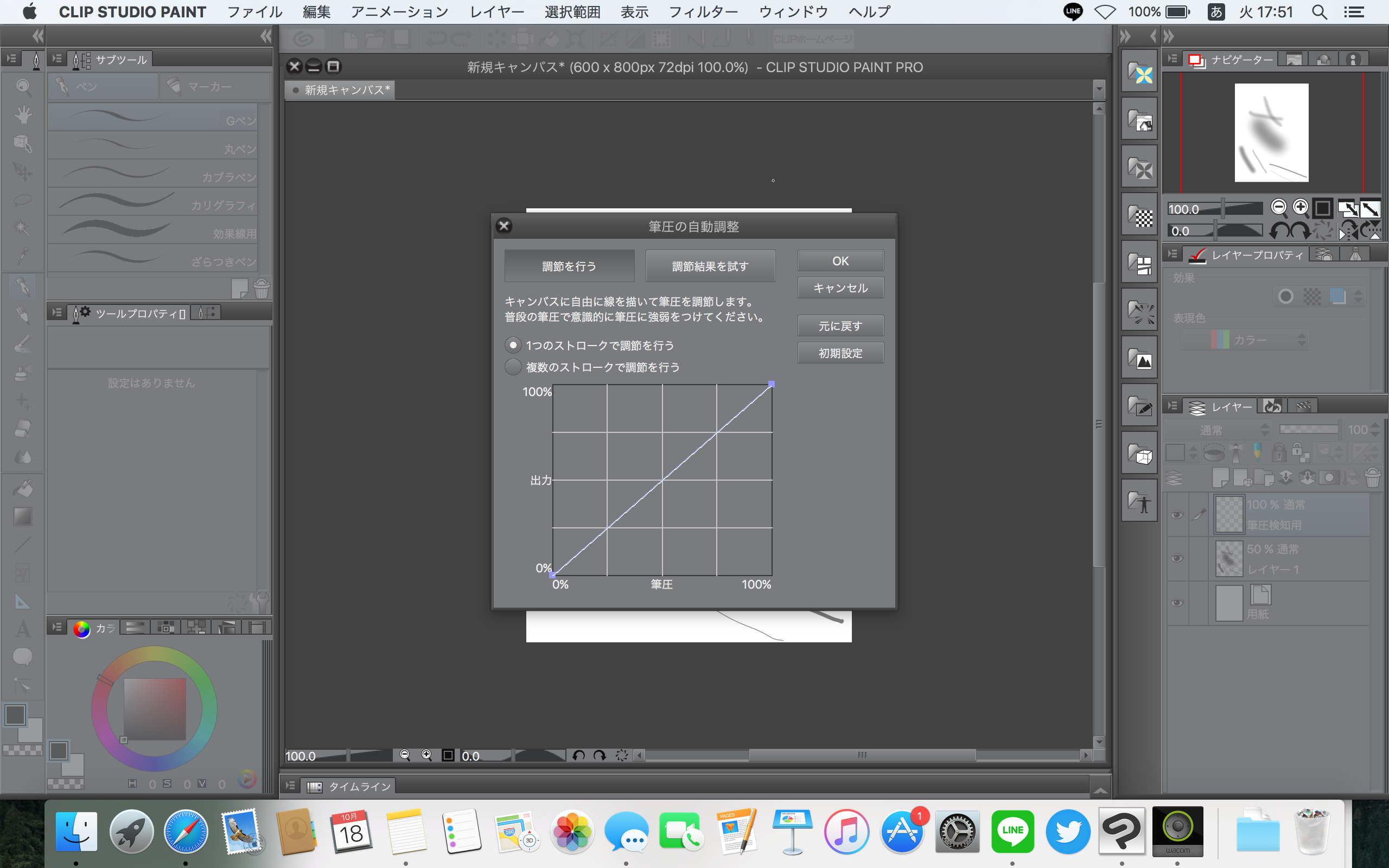 以前まで普通に使えていたのですがmacを修理に出して改めてペンタブレットドライバやクリスタをインストールして、ペンやブラシで描画すると明らかに設定より細くて、薄い線になってしまいます。 ですが、ワコムタブレットの筆圧レベルを確認すると以前と同様という感じでした。 ペンタブをつないだ状態でドライバのインストール、外してアンインストールをやってみましたが改善されませんでした(マッピングも初期設定のまま)。 どうすればよいでしょうか。 ------------------------------------------------------------ ■バージョン: ※Windowsは、[ヘルプ]メニュー → [バージョン情報]で確認できます。 ※MacOSXは、[CLIP STUDIO PAINT]メニュー → [バージョン情報]で確認できます。 ■グレード DEBUT( ) comico( ) PRO( ○ ) EX( ) ■OS Windows XP( ) Windows Vista( ) Windows 7 ( ) Windows 8( ) Windows 8.1( ) Windows 10( ) MacOS X 10.5( ) MacOS X 10.6( ) MacOS X 10.7( ) MacOS X 10.8( ) MacOS X 10.9( ) MacOS X 10.10( ) MacOS X 10.11( ○ ) mac OS 10.12( ) その他( ) ■ペンタブレット Intuos Pro( ) Intuos Comic( ) Intuos( ○ ) Intuos4( ) Intuos5( ) Cintiq( ) Bamboo Fun( ) Bamboo Comic( ) XP-Pen( ) Mousepad Tablet( ) その他( ) ■ペンタブレット モデル名(型番):Intuos CTL-490 ドライバのバージョン:6.3.17-5 ------------------------------------------------------------ |