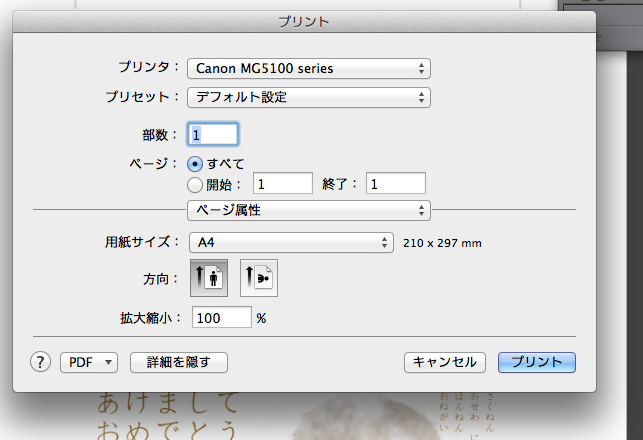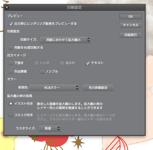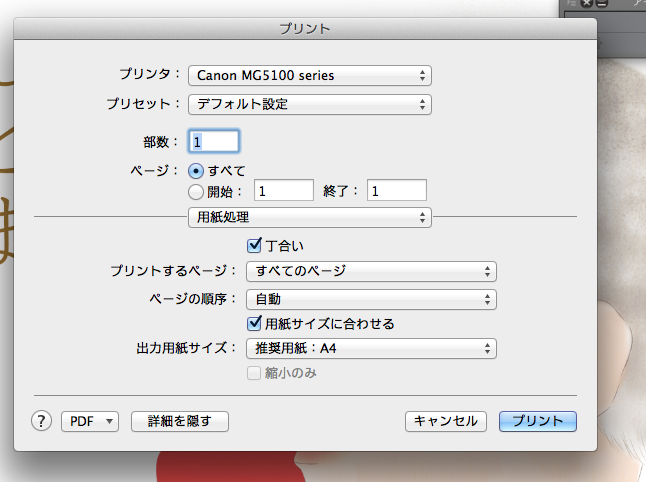・[ファイル]メニュー→[印刷設定]を開き、印刷時の設定状態で