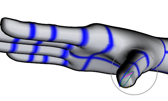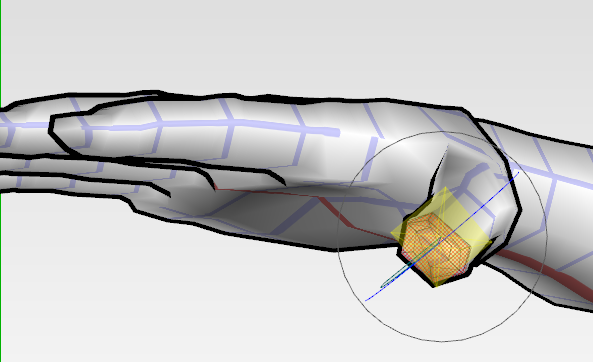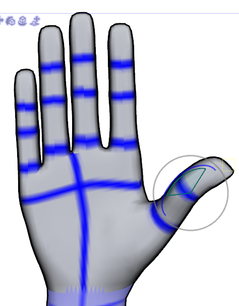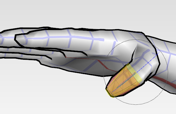※図の通り、そもそものマニピュレータの角度がおかしいため、親指の骨の動きに違和感があります。(不具合) ※少し見た目が分かり難いかもしれないですが・・・・この曲がり方は現実世界でもなかなかお目にかかれないと思うのですが。