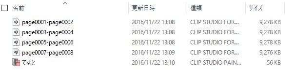 (クリスタは最初に1ー2ページが単ページのようなファイル名です。整列後に複数ページ名になります)