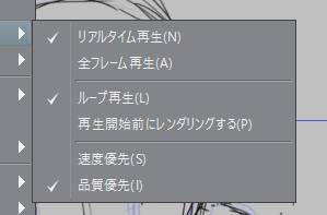 ・[アニメーション]メニュー→[再生設定]にて[速度優先]、[品質優先]のどちらに