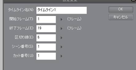 ・[アニメーション]メニュー→[タイムライン]→[設定変更]を開いた状態で
