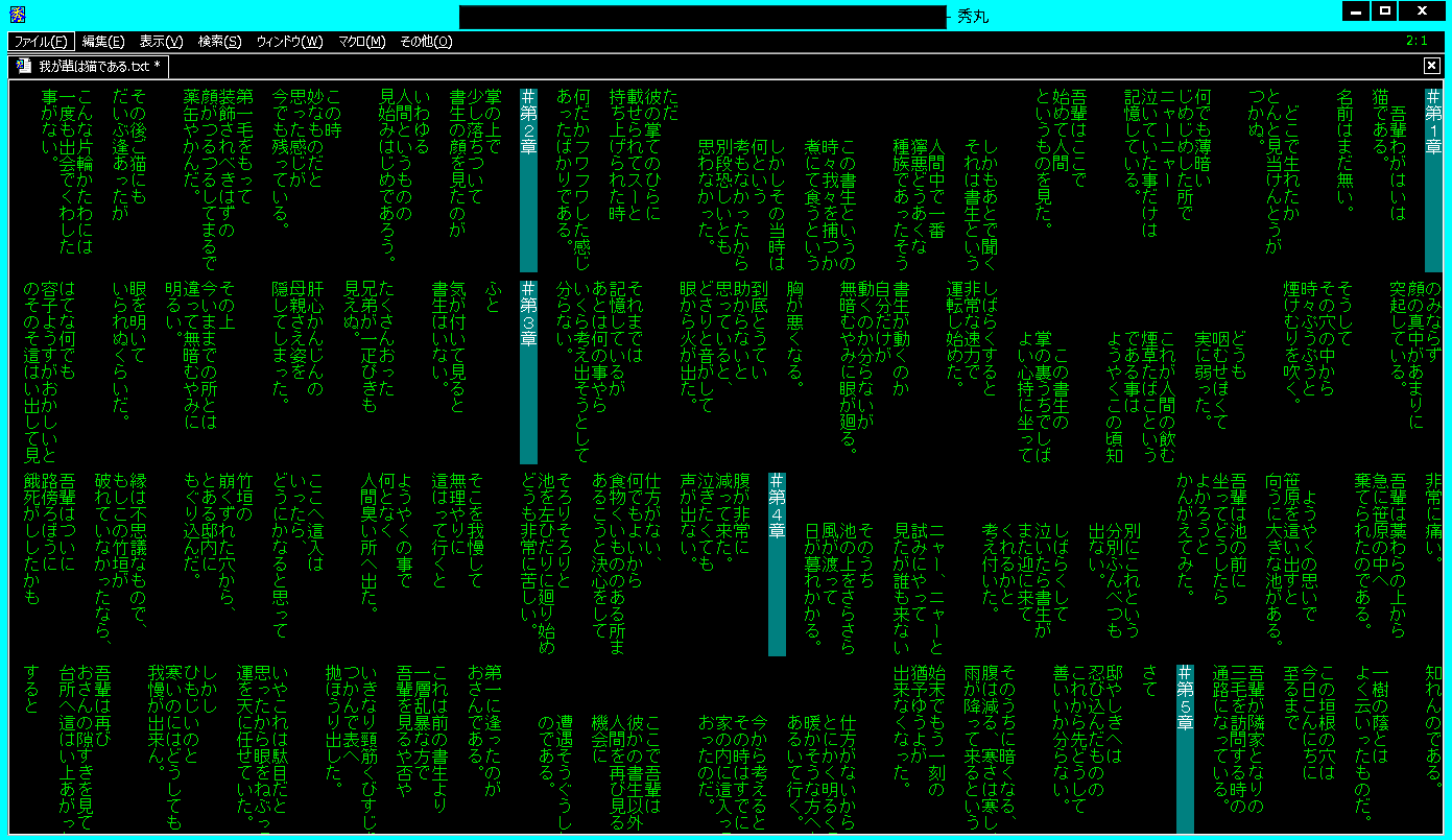 秀丸の使えそうな機能を、ストーリーエディタ上に積極的に取り入れてほしいです。 |