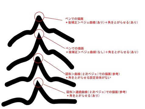 調査を行ったところ、後補正の[ベジェ]を用いているときに[角をとがらせる]の設定を