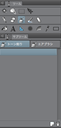 お手数ですが、[サブツール]パレットの左上にあります[メニュー表示]