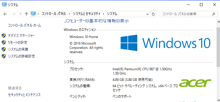 ・こちらのページをご覧いただき、「システムの種類」「CPU」