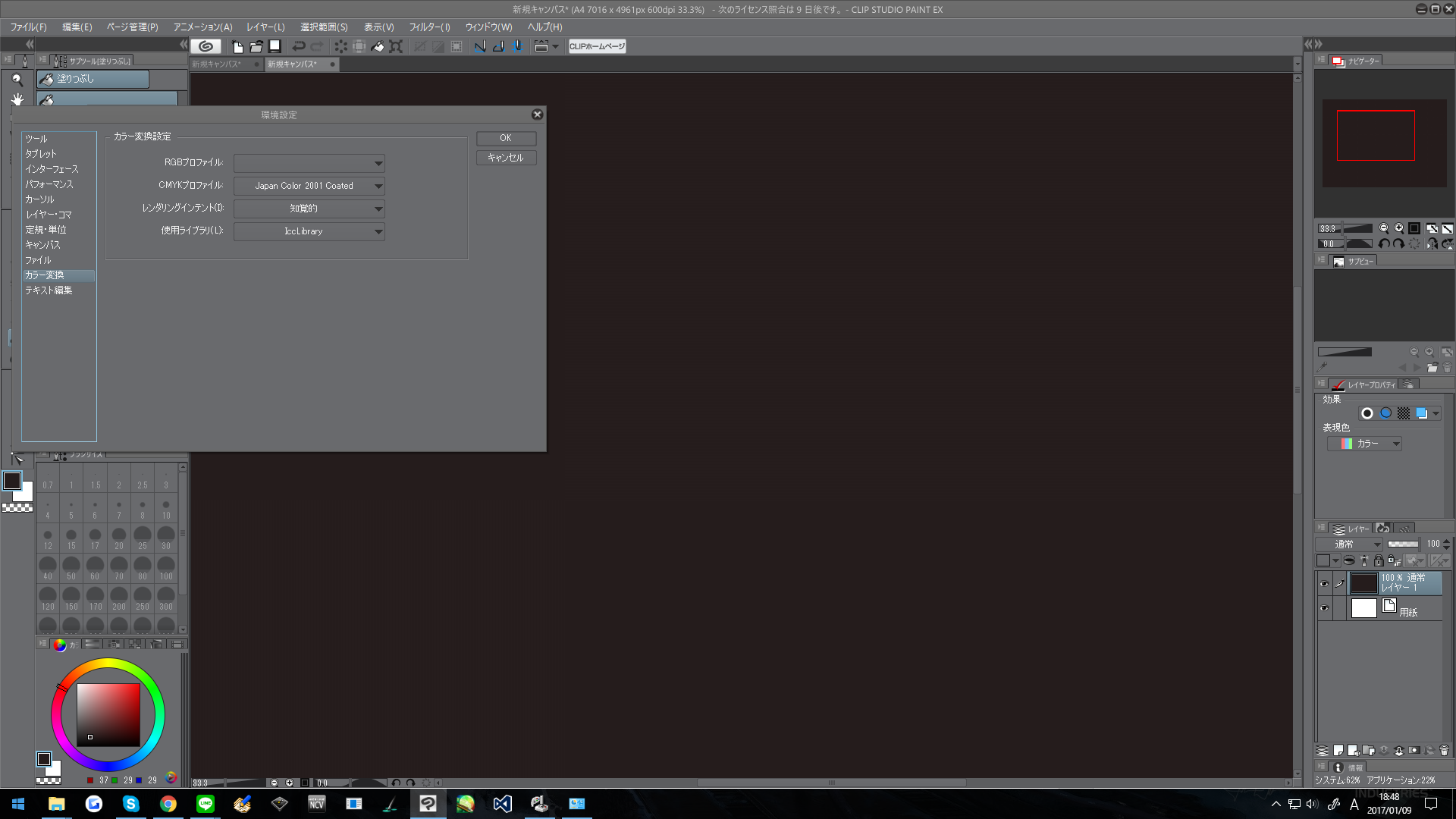 ・[ファイル]メニュー→[環境設定]を開き、[カラー変換]を