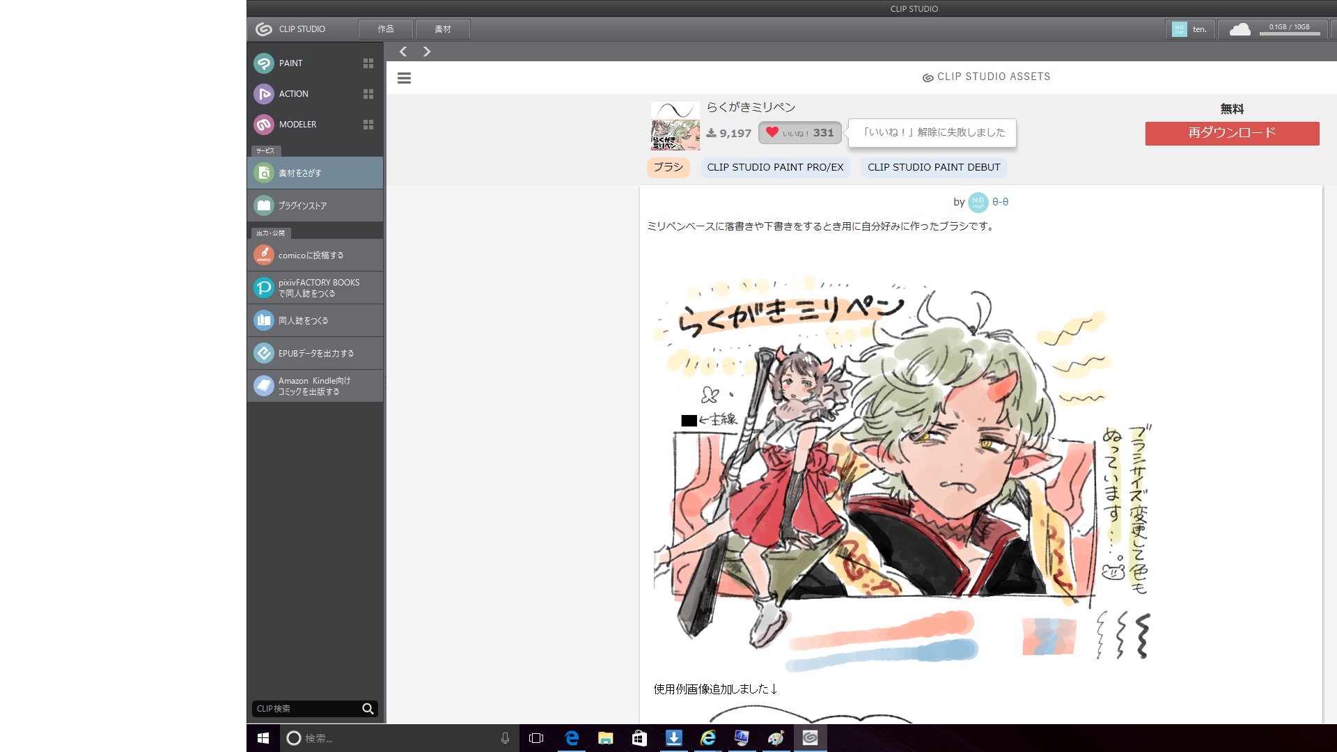 同じライセンスで使っているノートパソコンからは普通に素材をダウンロードすることができるのですが、デスクトップパソコンからだとこのような不具合が起こってしまいます。 何か解決策がございましたらご教示お願い致します。 ------------------------------------------------------------ ■バージョン:1.6.3 ※Windowsは、[ヘルプ]メニュー → [バージョン情報]で確認できます。 ※MacOSXは、[CLIP STUDIO PAINT]メニュー → [バージョン情報]で確認できます。
