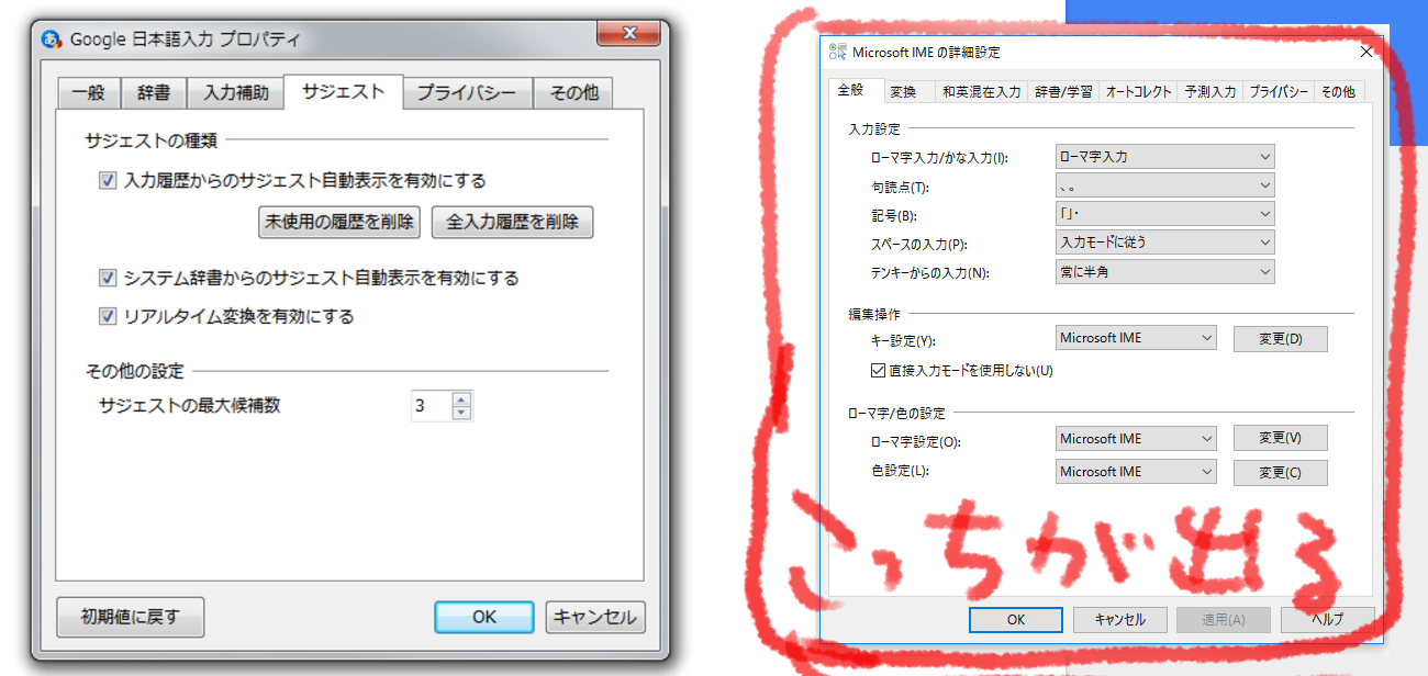 Microsoft IMEをご使用であれば、[予測入力]や[プライバシー]タブに該当と