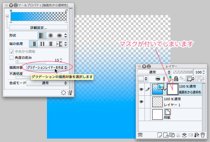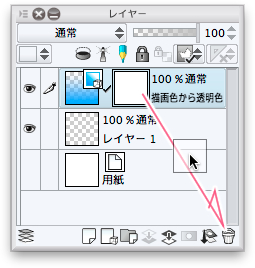 [マスクをレイヤーに適用]を行ったレイヤーは