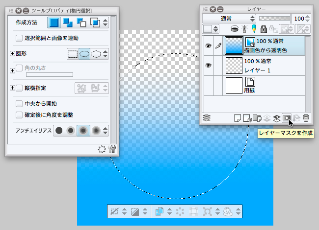 レイヤーマスクへかけたグラデのみをオブジェクト選択 |