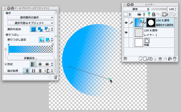 ご教授、宜しくお願いいたします。 (*- -)(*_ _)ペコリ さて、 「選択可能なオブジェクト」として「グラデーションのみ」を適用したオブジェクト選択ツール を使っても「レイヤーマスクへ適用したグラデ」を選択できません。 そういうものでしょうか? 普通のグラデは間違いなく選択できます。 Clip Studio Paint EX (Ver.1-6-3) OS: Windows10 ------------------------------------------------------------ ■バージョン: ※Windowsは、[ヘルプ]メニュー → [バージョン情報]で確認できます。 ※MacOSXは、[CLIP STUDIO PAINT]メニュー → [バージョン情報]で確認できます。 ■グレード DEBUT( ) comico( ) PRO( ) EX( ) ■OS Windows XP( ) Windows Vista( ) Windows 7 ( ) Windows 8( ) Windows 8.1( ) Windows 10( ) MacOS X 10.5( ) MacOS X 10.6( ) MacOS X 10.7( ) MacOS X 10.8( ) MacOS X 10.9( ) MacOS X 10.10( ) MacOS X 10.11( ) mac OS 10.12( ) その他( ) ------------------------------------------------------------ |