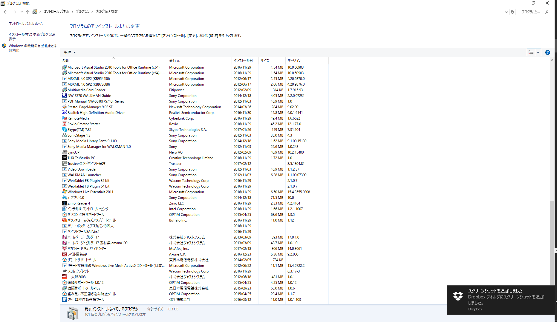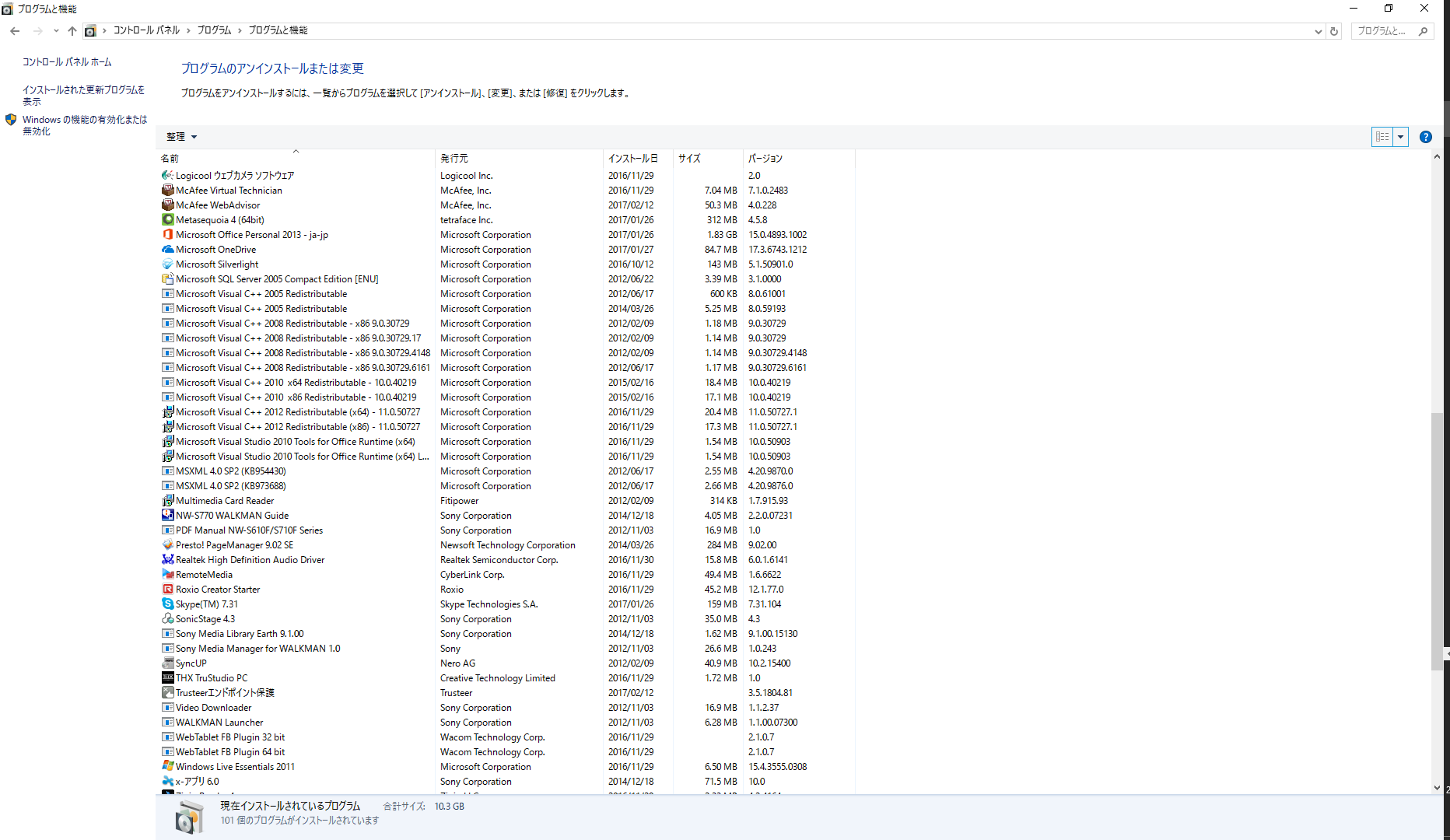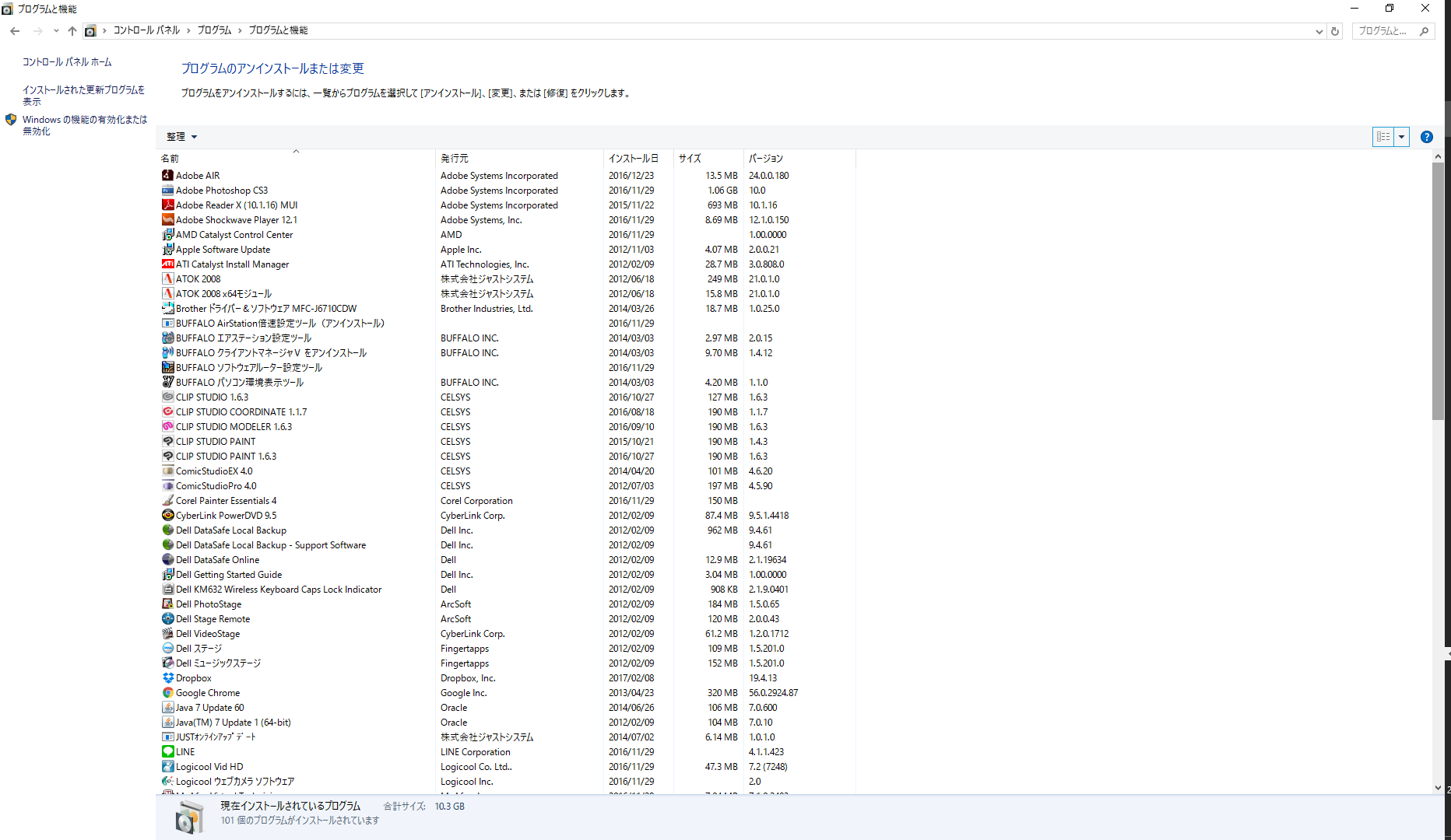 ・[コントロールパネル]→[プログラムと機能(プログラムのアンインストール)]