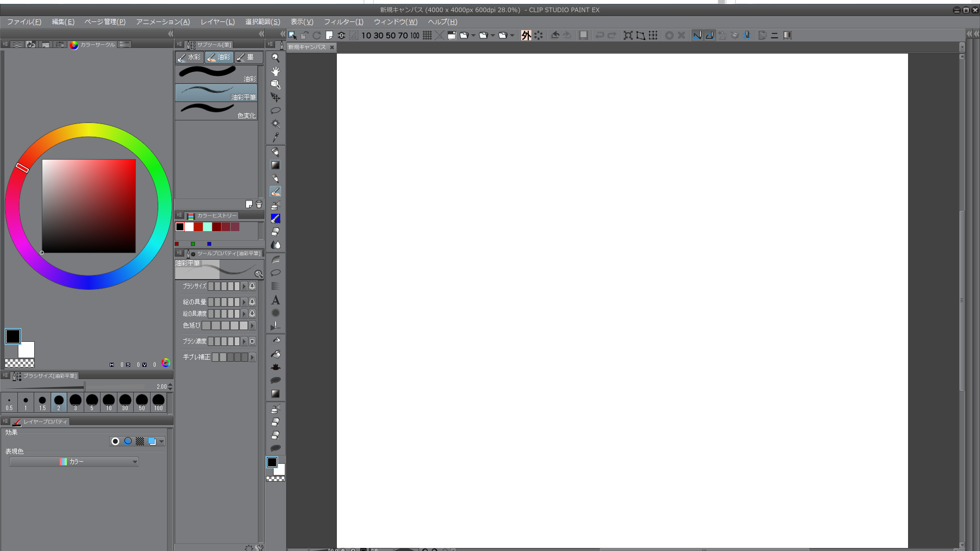 ・[ツールプロパティ]パレットにて[ブラシサイズ]や[不透明度]に