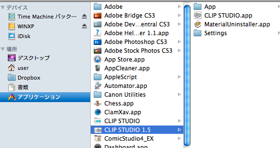・CLIP STUDIO PAINTのインストール先:アプリケーション内です