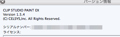 ・CLIP STUDIOを起動し、右上の?のマーク→[バージョン情報]を開き、