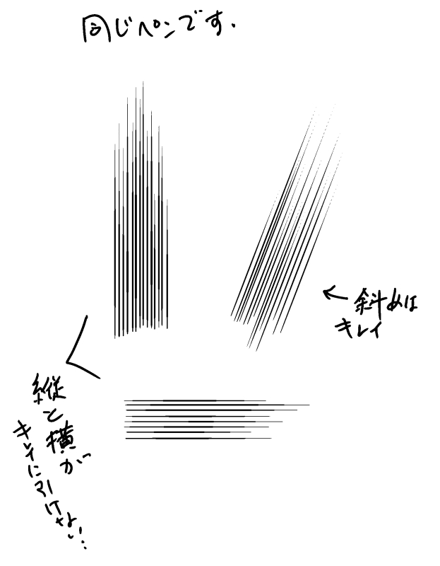 定規を使うと垂直と水平の線だけが汚くなる |