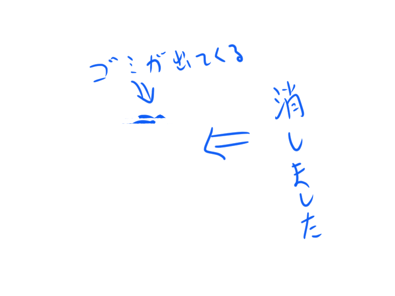 ベクターレイヤーにて消しゴムで消した後、選択範囲を指定して拡大などを使用するとゴミが出てくる |