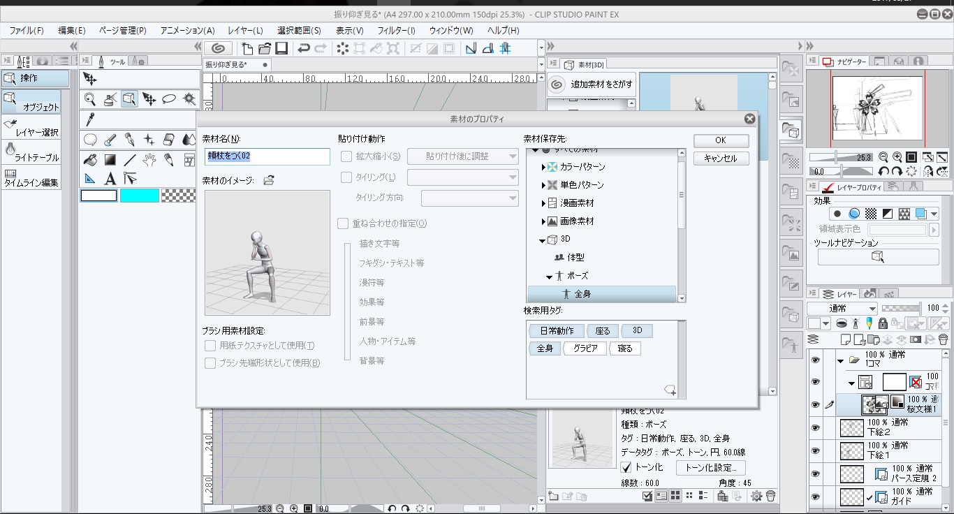 クリスタ(EX) OSはウインドウズ10です。3D素材を作品にドラッグアンドドロップ出来ません。(いろいろ試してみたのですがカラーパターン、基本、カケアミ、柄、効果心情、背景、DLがD&Dできません。 でも、テクスチャーとマンガ素材はD&D出来ます。素材のプロパティで、DDできるのは貼り付け動作ですべてチェックマークが入った状態なのに、出来ない物はチェックマークが入れられないです。なぜでしょうか。メンテナンスメニューで素材の再構築をしてもDDできません(出来ない物は)。どうしたらいいでしょうか。途方に暮れています。お知恵を拝借願いたいです。よろしくお願いします。 ------------------------------------------------------------ ■バージョン: ※Windowsは、[ヘルプ]メニュー → [バージョン情報]で確認できます。 ※MacOSXは、[CLIP STUDIO PAINT]メニュー → [バージョン情報]で確認できます。 ■グレード DEBUT( ) comico( ) PRO( ) EX( ○ ) ■OS Windows XP( ) Windows Vista( ) Windows 7 ( ) Windows 8( ) Windows 8.1( ) Windows 10( ○ ) MacOS X 10.5( ) MacOS X 10.6( ) MacOS X 10.7( ) MacOS X 10.8( ) MacOS X 10.9( ) MacOS X 10.10( ) MacOS X 10.11( ) mac OS 10.12( ) その他( ) ------------------------------------------------------------ |