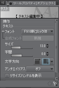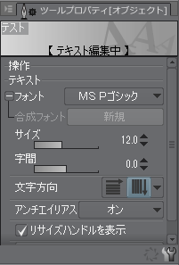 現在、[オブジェクト]サブツール、[テキスト]サブツールにて