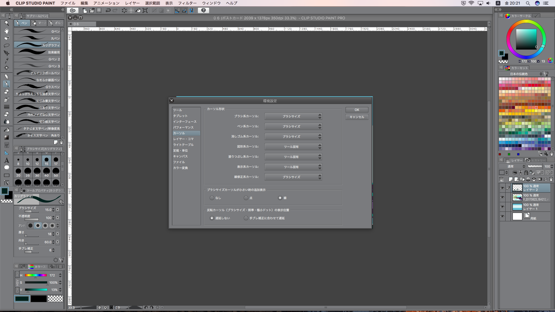 ・[CLIP STUDIO PAINT]メニュー→[環境設定]→[カーソル]を