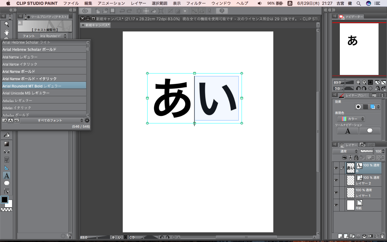 2.[ツールプロパティ]パレットでご希望のフォントとサイズを選択して