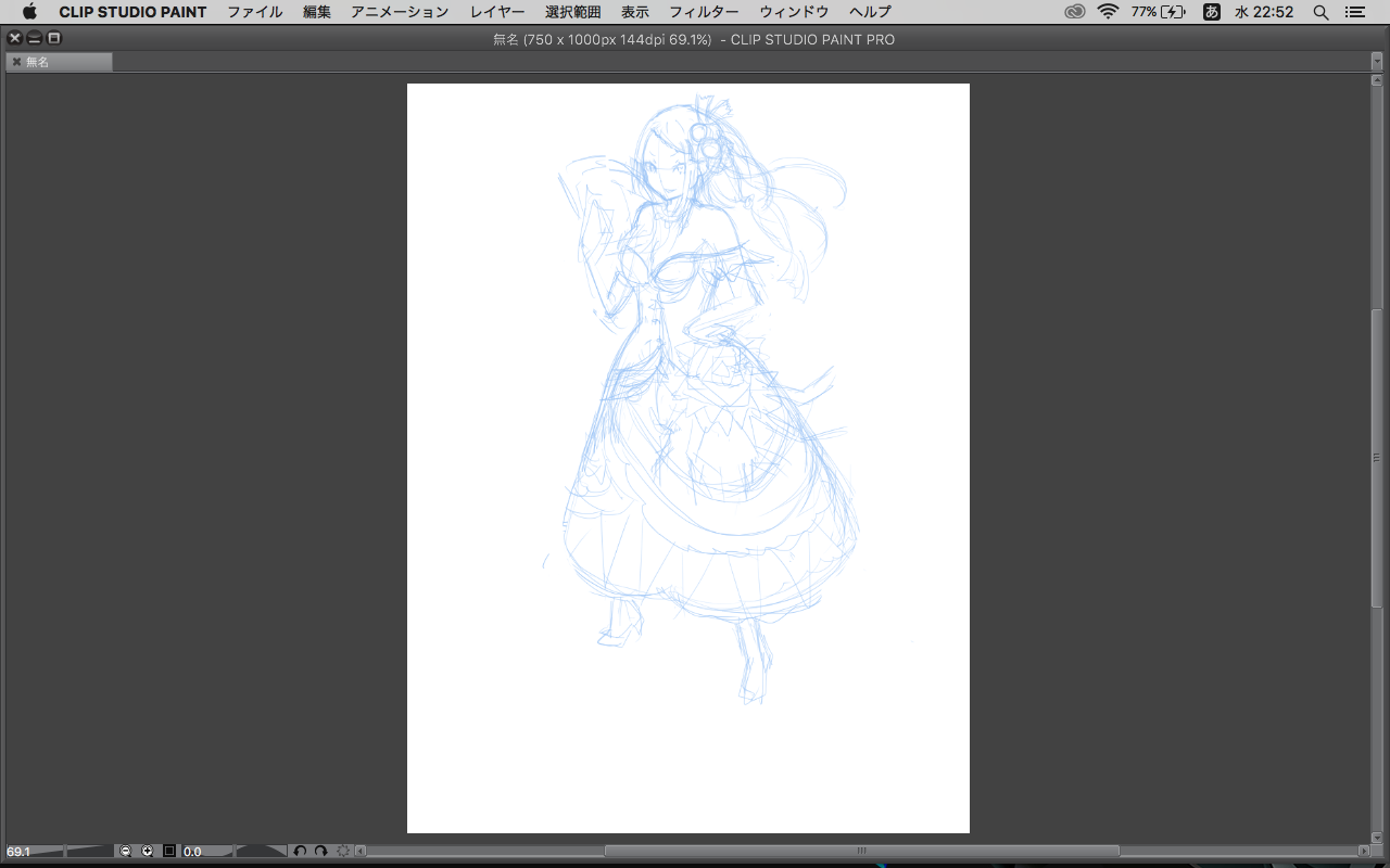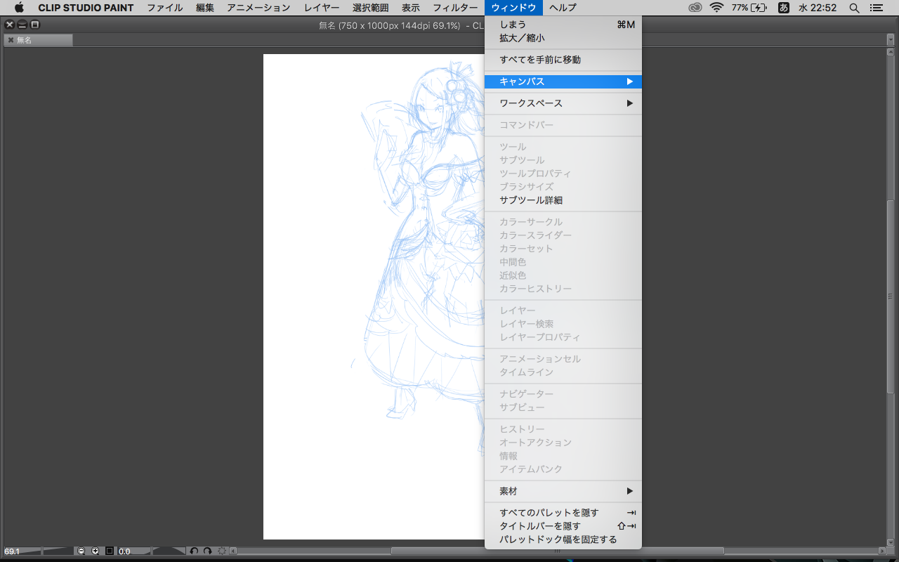 いただき、ウィンドウメニューを含むCLIP STUDIO PAINT全体の画面