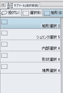 階層に[投げなわ選択3]や[内部選択6]等のサブツールが出てくる構成となります。