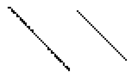 すみません。引かれる線は左のような線のときもありました。ただ引かれる線が毎回必ず筆圧感知機能が働いていない1ピクセル幅の線になるのは共通しています。
