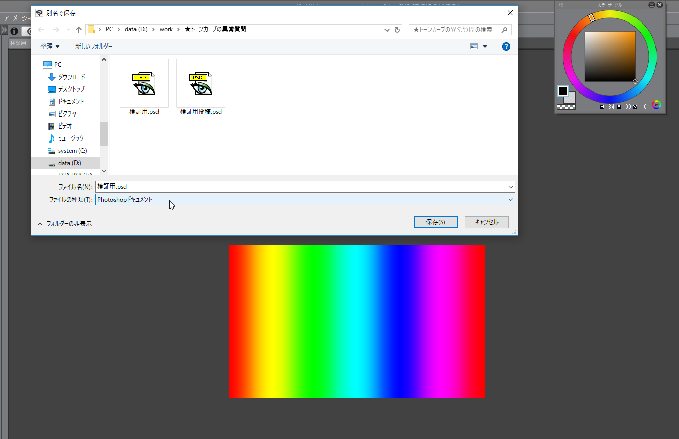 Q .psd保存したもので問題が発生しているとの事ですが、[ファイル]メニューの
