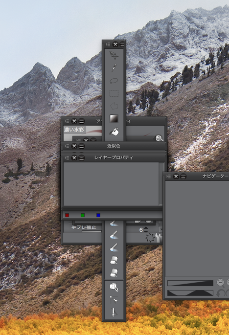 概要 外部ディスプレイ(Cintiq 27QHDで確認)でCLIP STUDIO PAINTを使用した後、 外部ディスプレイを切断するとパレットが正常な位置に配置されません。 スクリーンショットのように、全てのパレットが分離され画面中央に配置されます。 再現手順 1. 外部ディスプレイを接続した状態でCLIP STUDIO PAINTを起動します。 2. 外部ディスプレイにCLIP STUDIO PAINTのウィンドウとパレットを移動します。(ドックのCLIP STUDIO PAINTのアイコンを右クリックし、オプション→割り当て先から移動します。) 3. 全てのパレットが外部ディスプレイに正常に表示されていることを確認します。 4. CLIP STUDIO PAINTを終了します。 5. 外部ディスプレイを切断し、OSから認識されない状態にします。 (DisplayPort接続のディスプレイでは電源を切るだけでこの状態になります。) 6. 再度 CLIP STUDIO PAINTを起動すると、スクリーンショットのような状態になります。 現在の回避策 ディスプレイごと(メインディスプレイと外部ディスプレイ)に別々のワークスペースを保存しておき、 正常に配置されない場合にディスプレイに適合するワークスペースを読み込みます。 パレットの位置を変更する場合、それぞれのディスプレイでワークスペースを保存しなおす必要があります。 スクリーンショット ![]() ------------------------------------------------------------ ■バージョン:1.6.7 ※Windowsは、[ヘルプ]メニュー → [バージョン情報]で確認できます。 ※MacOSXは、[CLIP STUDIO PAINT]メニュー → [バージョン情報]で確認できます。 ■グレード DEBUT( ) comico( ) PRO( ) EX( ○ ) ■OS Windows XP( ) Windows Vista( ) Windows 7 ( ) Windows 8( ) Windows 8.1( ) Windows 10( ) MacOS X 10.5( ) MacOS X 10.6( ) MacOS X 10.7( ) MacOS X 10.8( ) MacOS X 10.9( ) MacOS X 10.10( ) MacOS X 10.11( ) mac OS 10.12( ○ ) その他( macOS 10.13 ) ------------------------------------------------------------ 再現環境1: iMac 27インチ 5K (2017) Cintiq 27QHD (DisplayPort接続) macOS Sierra および High Sierra 両方 再現環境2: MacBook 12インチ (2015) Cintiq 27QHD (Apple純正アダプタを経由したHDMI接続) macOS Sierra |