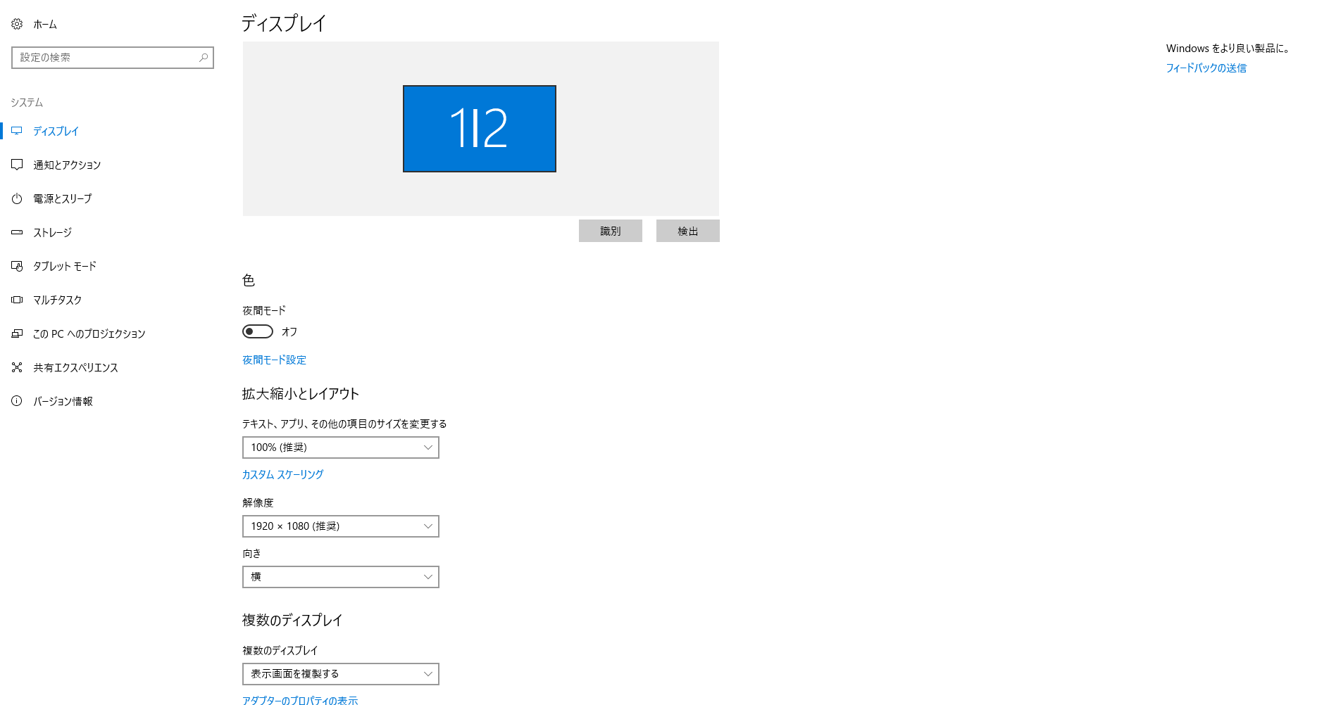 ・ディスプレイ設定を拝見すると[表示画面を複製する]となっておりますので