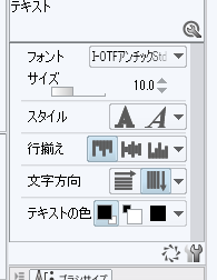 お手数ですが、テキストレイヤーを選択した状態で、レイヤープロパティで