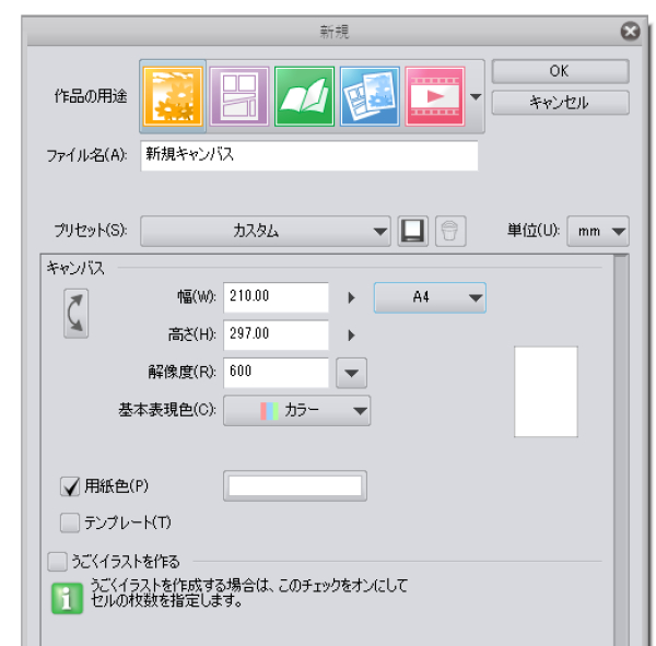 [作品の用途]の設定があり、選択するものによって、表示