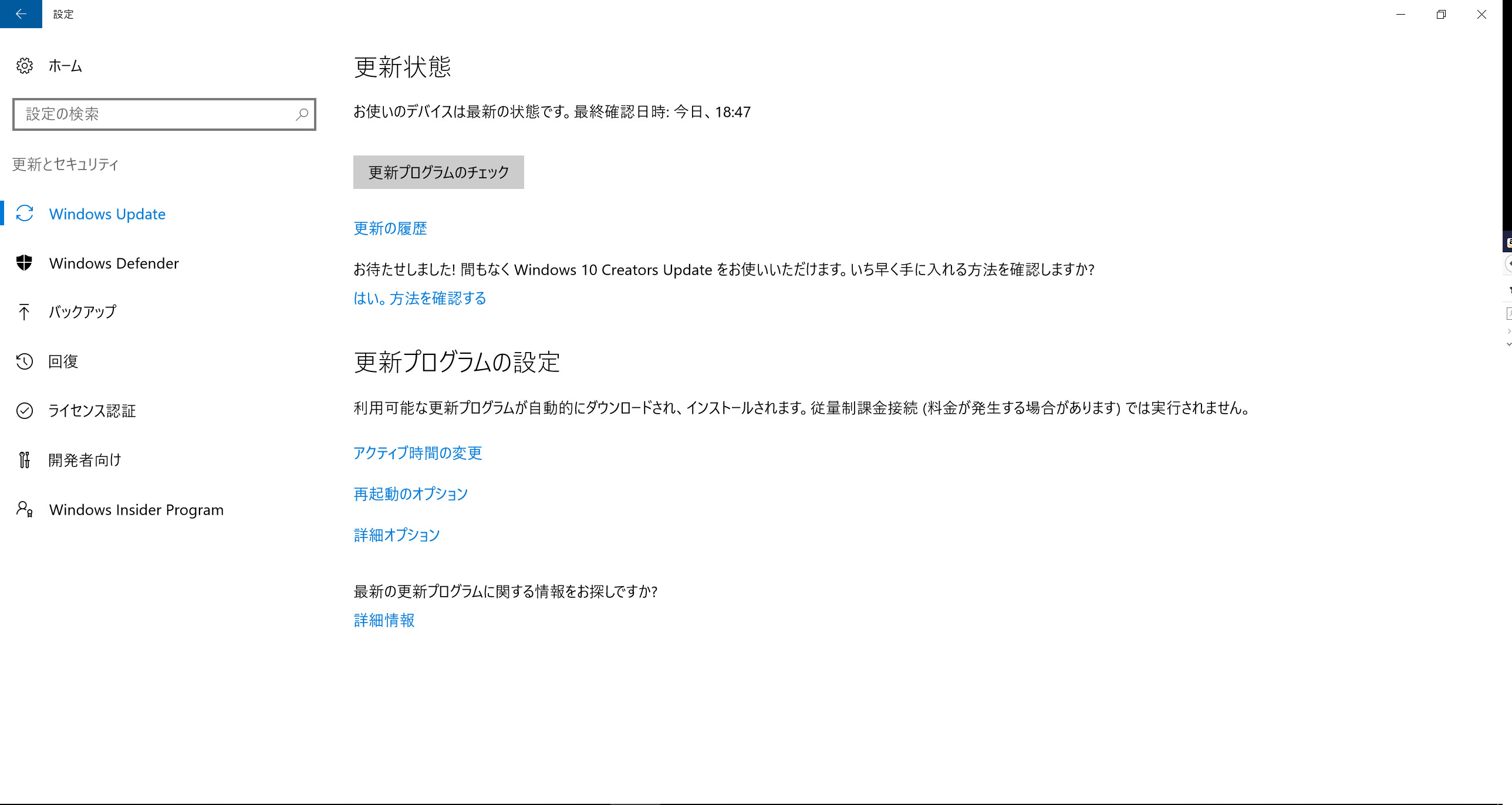 →[WindowsUpdate]を選択いただき、表示される画面のスクリーン