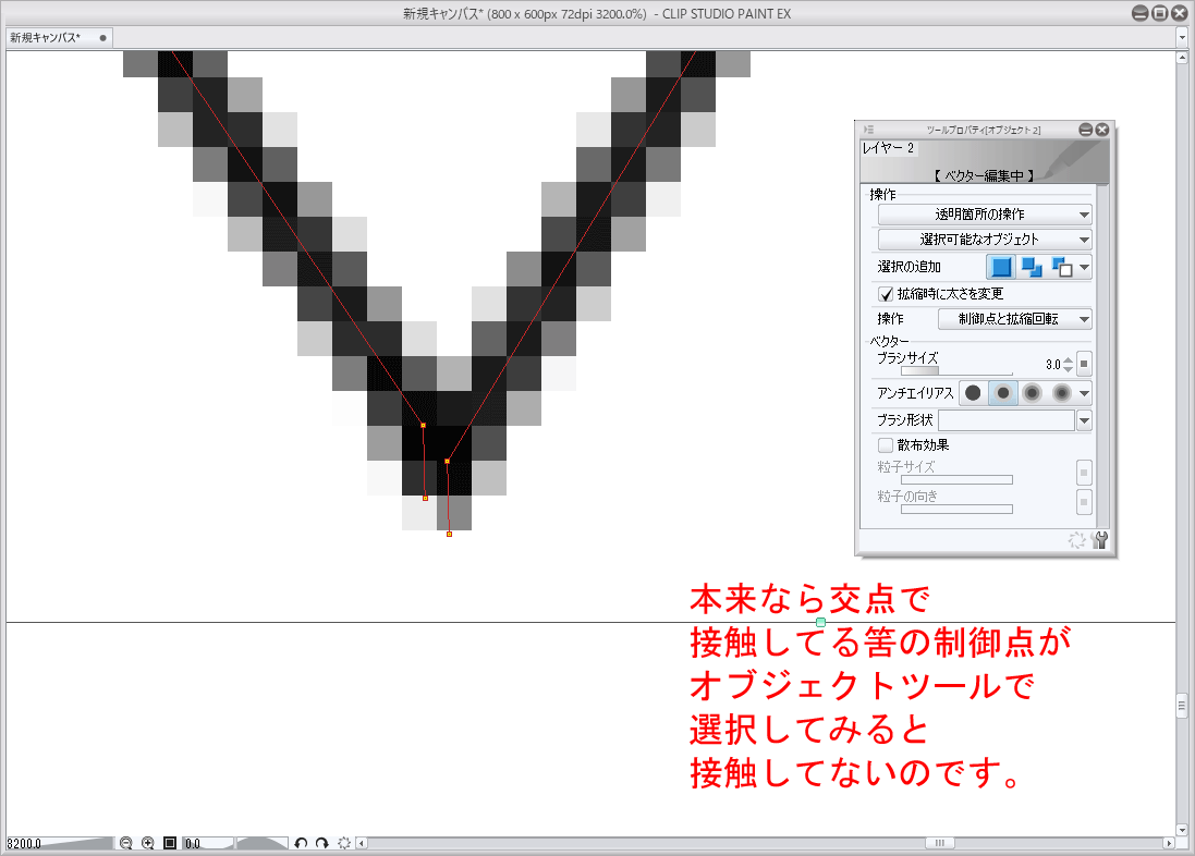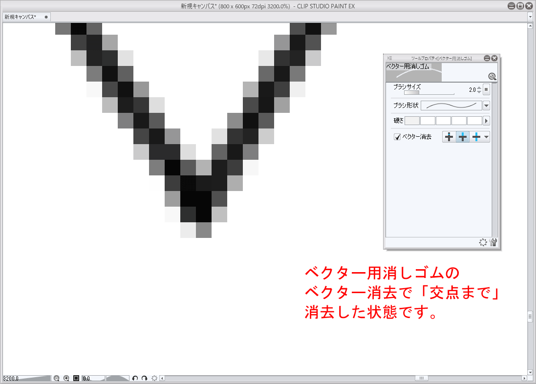 解決方法探したのですが見つからず、不具合なのか、解決方法があれば教えて頂きたいです。 ベクターレイヤーで、直線ツールをしようして線を引き、消しゴムではみ出した部分を消すと 少しはみ出して残ります。 折角ベクターレイヤーを使っていても、このはみ出しをまた消さなくてはならず 解決策を教えて頂きたいです。