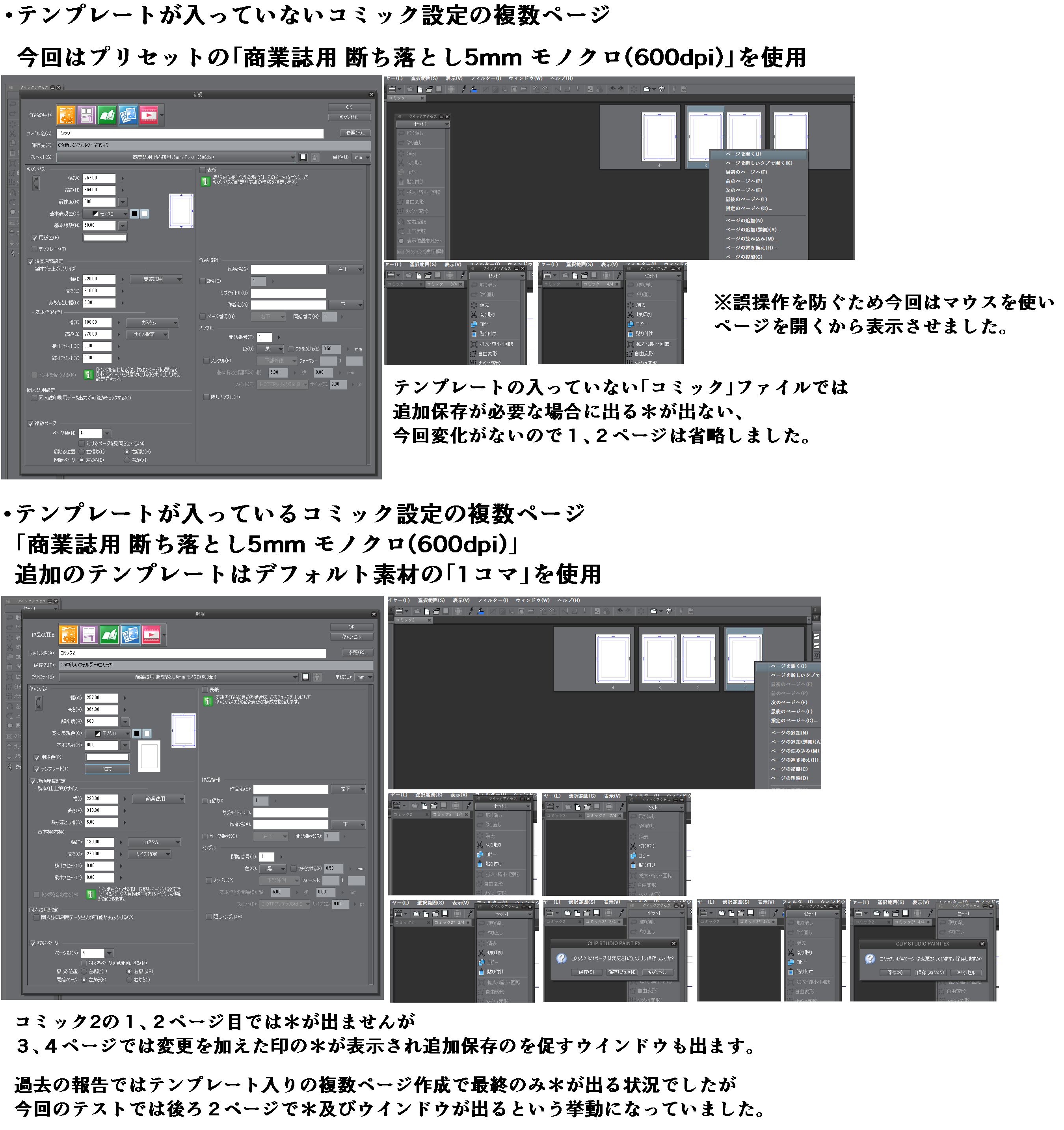 そしてですが最新版のクリスタでも新規で複数ページを作った状態のみ