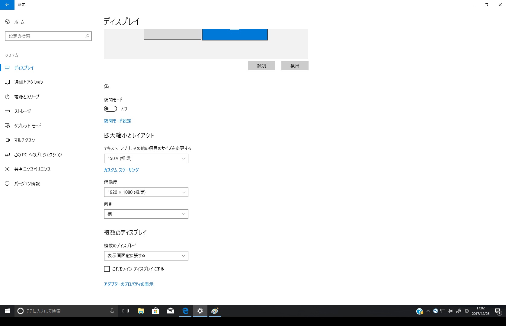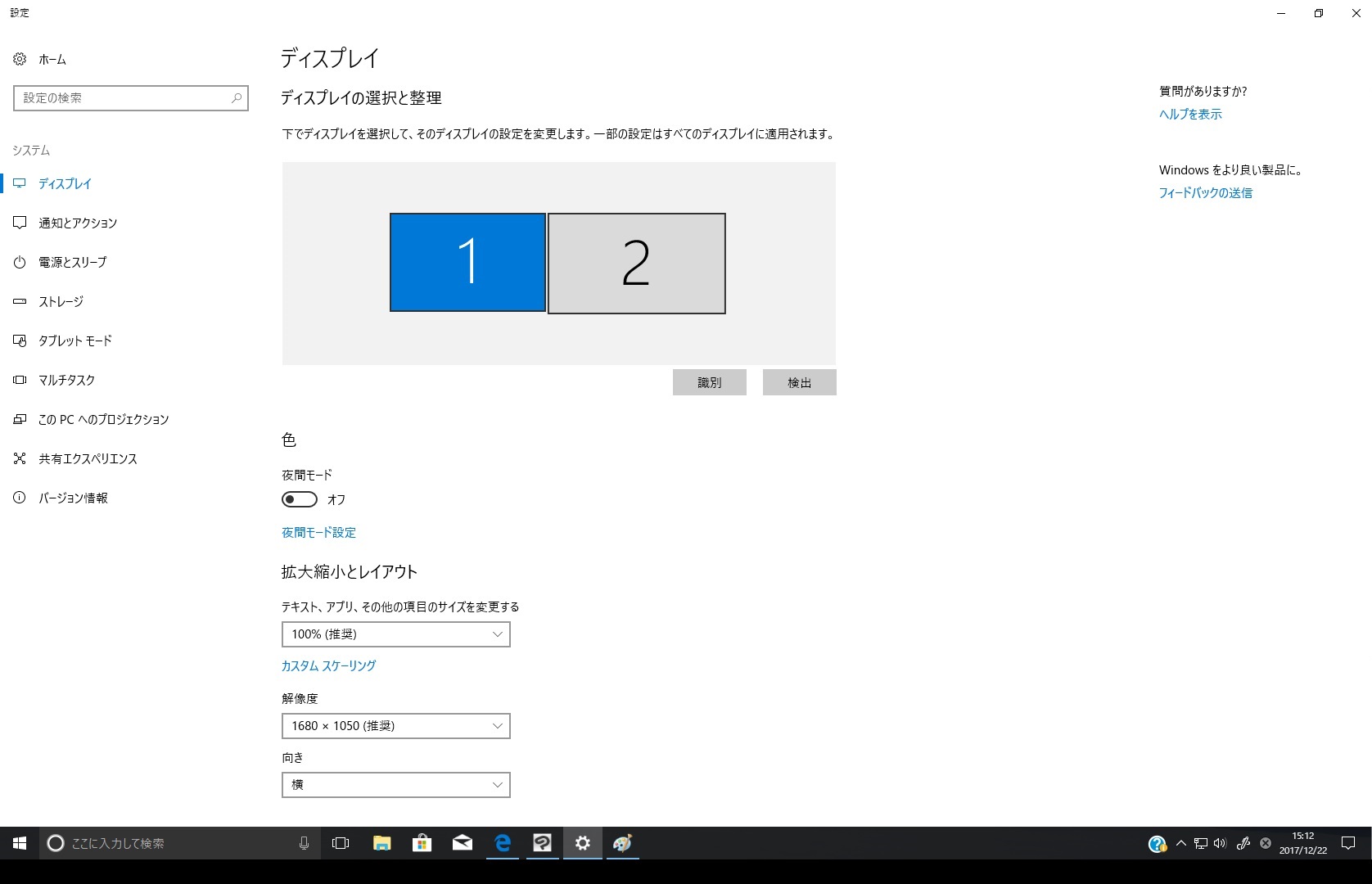 「1」「2」という表示をクリックするとモニタごとの内容が表示