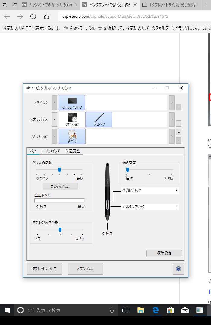 「パソコンを一度再起動をしてみる」、「タブを消しもう一度開いてみる」などを試しましたが変化はありませんでした。 ペンタブレットはCintiq13HDを使用しております。