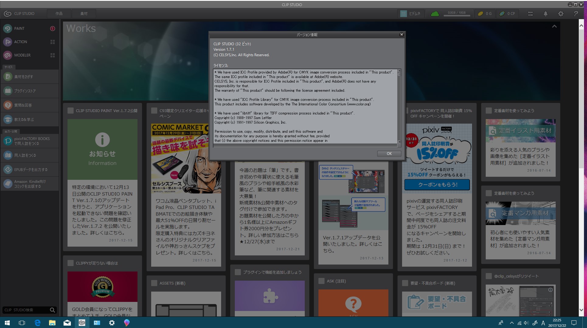 ・CLIP STUDIOを起動し、[?]アイコンのバージョン情報に記載されている