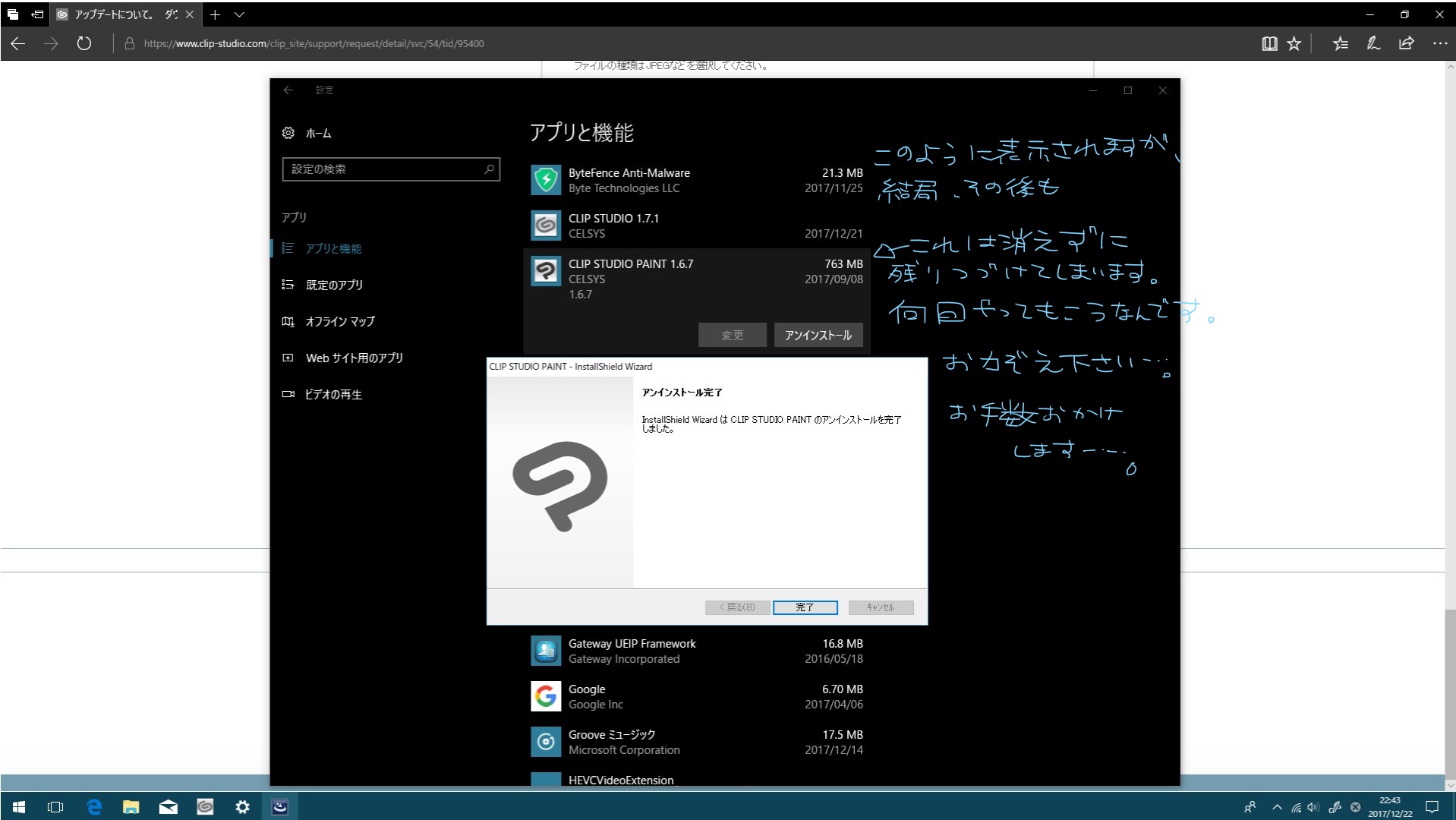 お手数ですが、以下の手順でCLIP STUDIO PAINTのアンインストールと